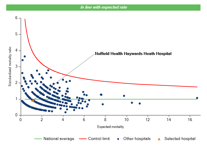 It is important to note that the types of patients a hospital treats and the procedures it carries out can explain variation in patient outcomes after surgery. Please click on the “How to interpret this chart” button for further information.