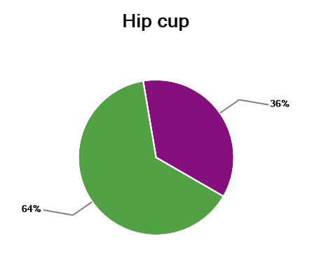 This information display shows overall characteristics for first-time hip replacement patients treated at this hospital between 1 April 2003 and 31 March 2024. Against each characteristic you will be able to see whether this hospital has treated a greater or fewer number of patients of a particular type. This hospital is represented on the chart by the black marker (