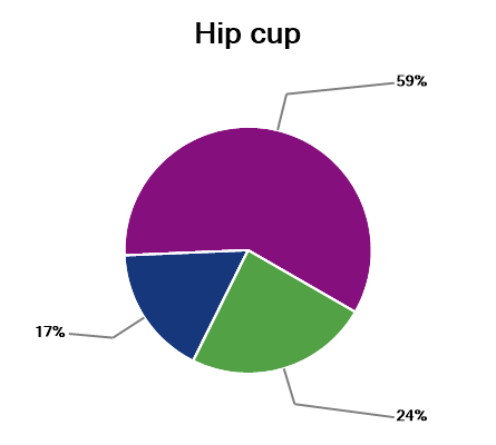 This information display shows overall characteristics for first-time hip replacement patients treated at this hospital between 1 April 2003 and 31 March 2024. Against each characteristic you will be able to see whether this hospital has treated a greater or fewer number of patients of a particular type. This hospital is represented on the chart by the black marker ().