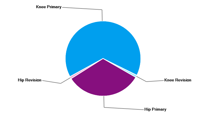 Primary hip replacement Primary total knee replacement Primary unicondylar (partial) knee replacement Primary patello-femoral replacement Revision knee replacement |
