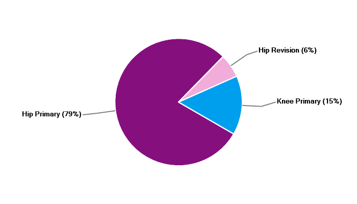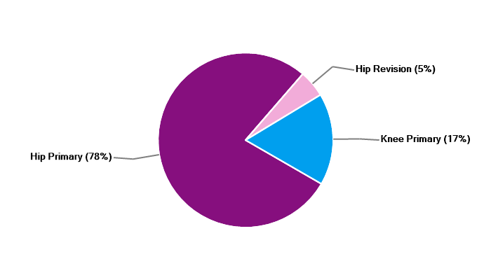 Primary hip replacement Revision hip replacement Hip resurfacing Primary total knee replacement Revision knee replacement |
