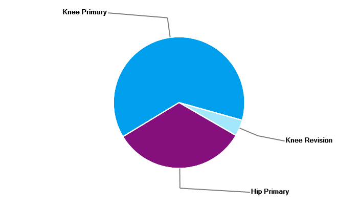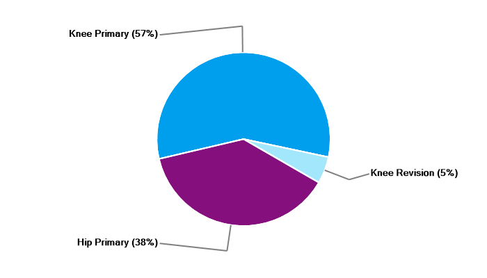 Primary hip replacement Revision hip replacement Hip resurfacing Primary total knee replacement Primary unicondylar (partial) knee replacement Primary patello-femoral replacement Revision knee replacement |