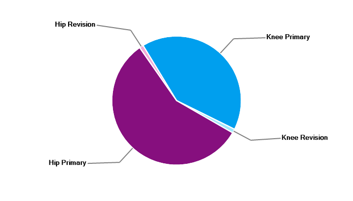 Primary hip replacement Revision hip replacement Hip resurfacing Primary total knee replacement Primary unicondylar (partial) knee replacement Revision knee replacement |