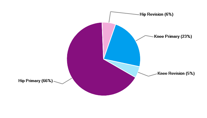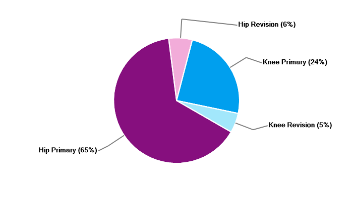 Primary hip replacement Revision hip replacement Primary total knee replacement Primary patello-femoral replacement Revision knee replacement |