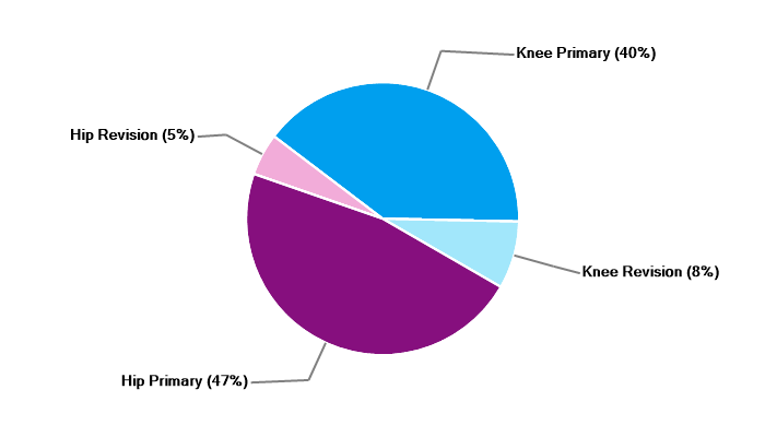 Primary hip replacement Revision hip replacement Primary total knee replacement Revision knee replacement |