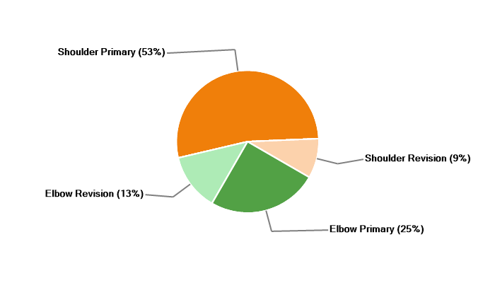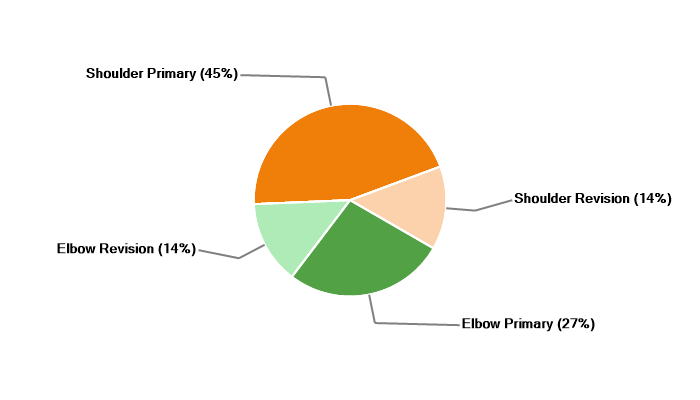Primary elbow replacement Revision elbow replacement Primary shoulder replacement Revision shoulder replacement |