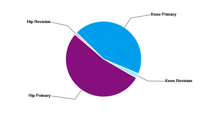 Primary hip replacement Primary total knee replacement Primary unicondylar (partial) knee replacement Revision knee replacement |