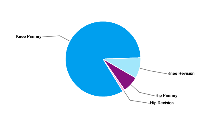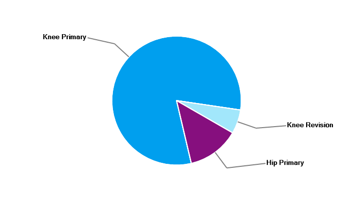 Primary hip replacement Primary total knee replacement Primary unicondylar (partial) knee replacement Primary patello-femoral replacement Revision knee replacement |
