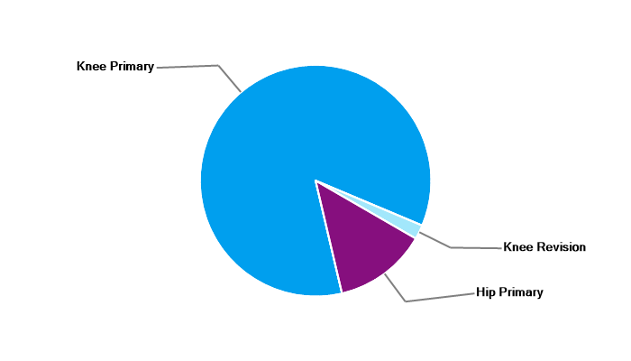 Primary total knee replacement Primary unicondylar (partial) knee replacement Primary patello-femoral replacement Revision knee replacement |