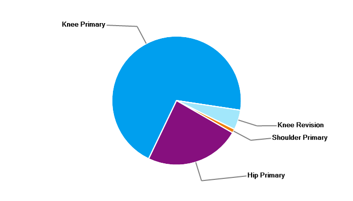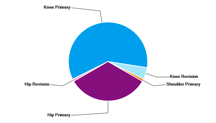 Primary hip replacement Primary total knee replacement Primary unicondylar (partial) knee replacement Primary patello-femoral replacement Revision knee replacement |