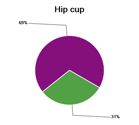 This information display shows overall characteristics for first-time hip replacement patients treated by this surgeon between 1 April 2003 and 31 March 2024. Against each characteristic you will be able to see whether this surgeon has been responsible for a greater or fewer number of patients of a particular type. This surgeon is represented on the chart by the black marker ().