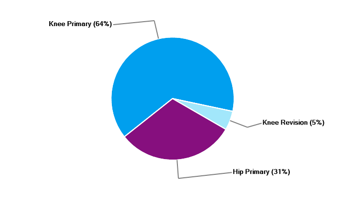 Primary hip replacement Revision hip replacement Primary total knee replacement Primary unicondylar (partial) knee replacement Revision knee replacement |