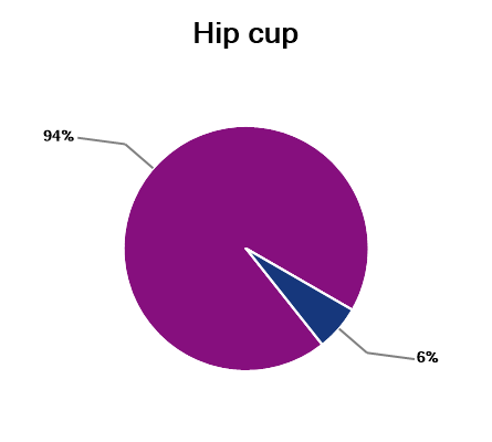 This information display shows overall characteristics for first-time hip replacement patients treated by this surgeon between 1 April 2003 and 31 March 2024. Against each characteristic you will be able to see whether this surgeon has been responsible for a greater or fewer number of patients of a particular type. This surgeon is represented on the chart by the black marker ().